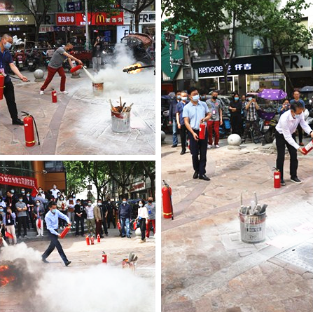 培训结束后,所有员工回到各自工作岗位。随着公司消防演练总指挥马长潇的口哨声响起,消防演练活动拉开帷幕。本次消防演练环节模拟4楼发生火警,保安人员第一时间发出报警讯息,所有楼层报警器全部响起。各部室安全员手挥小红旗,迅速引导部门员工通过消防通道疏散到门前广场,并向总指挥马长潇汇报人员疏散情况,整个疏散过程井然有序。随后张教官向大家讲解了干粉灭火器的使用方法和技巧,在场人员依次有序地进行灭火演练。下午四时,演练在总指挥马长潇的哨声中圆满结束。