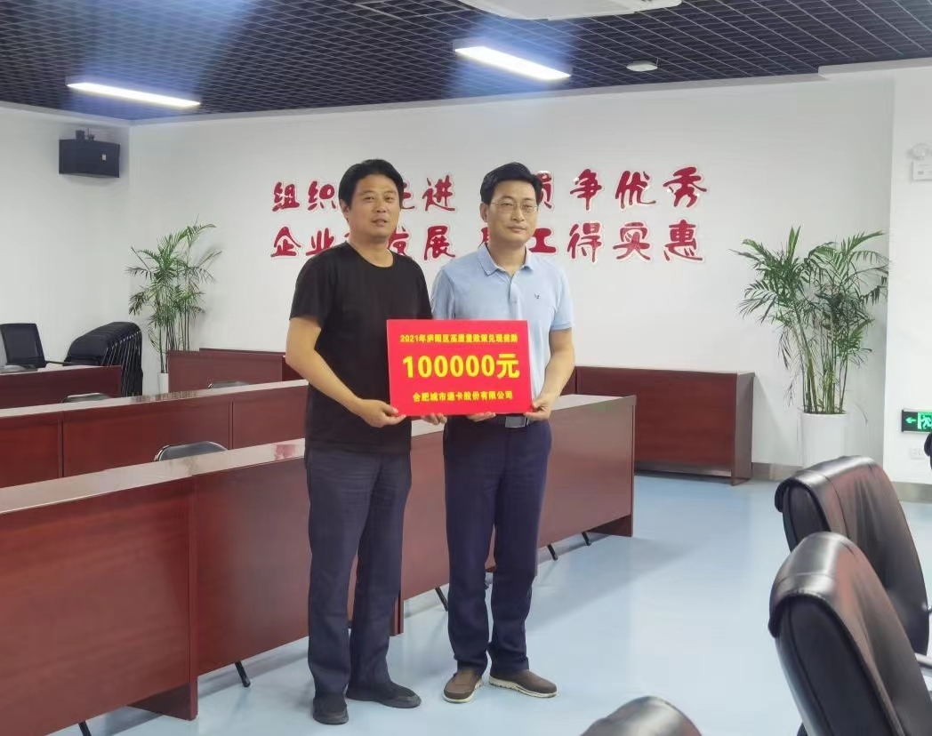 会上,周磊表示,通卡公司作为庐阳区高质量发展企业,立足为市民提供便捷出行服务,一直以来保持良好的信誉和发展态势。此次来访,周副主任代表庐阳区政府为公司送来10万元高质量政策兑现奖励,勉励企业在今后的发展过程中不断为市民提供更加优质服务。