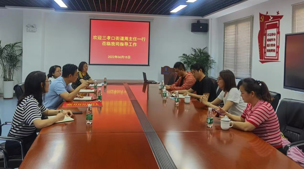 6月15日下午,庐阳区三孝口街道办副主任周磊一行莅临我司指导工作。公司副总经理张永瑞,财务总监刘荣,综合办公室总经理左桂凤,财务总经理张宏燕参加会议。