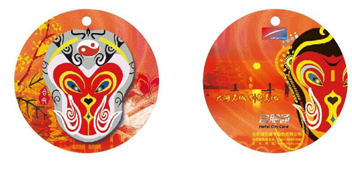 猴年生肖卡与以前的“合肥通”卡相比,外形独特,小巧美观,携带方便,卡片主色调选取温暖热情的橘红色,并融入生肖脸谱、巢湖渔舟唱晚等合肥地域性元素,使卡片具有一定的收藏纪念价值。