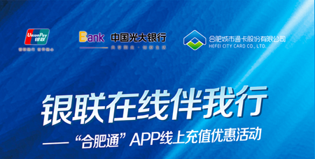 2、活动期间,每周六、日,使用光大银行62银联卡在合肥通手机客户端上使用银联线上支付,单笔满30元立减3元。单卡单月仅可享受3次优惠机会,每日优惠数量限定900名,先到先得,用完即止。