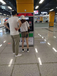 (在机具布设的当日,各站点内广大市民纷纷在地铁站内享受“合肥通”自助服务)
