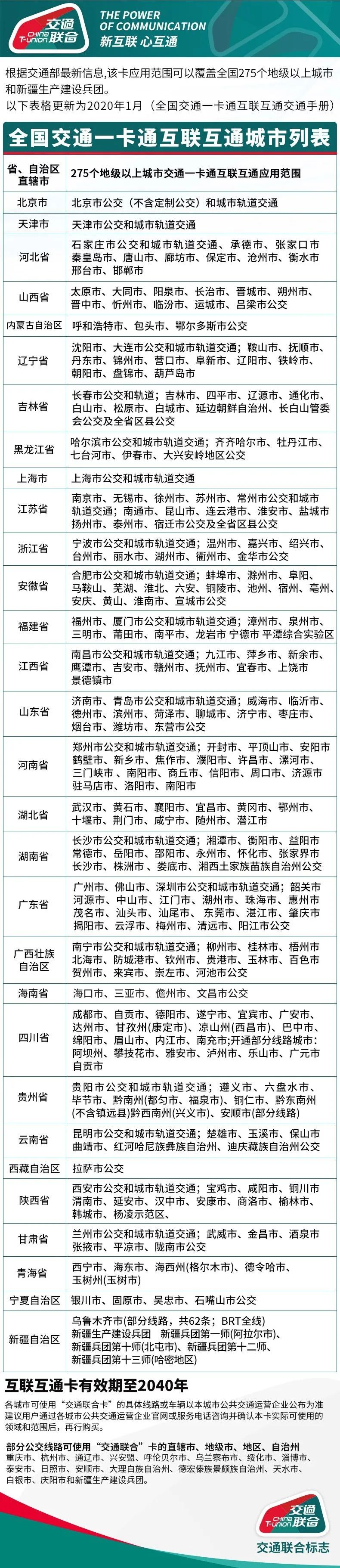 我市于2019年正式加入交通一卡通全国互联互通城市行列。经过紧张有序的建设准备,通过新建系统和对硬件受理环境全面的升级改造,在2019年6月28日交通部标准“开云官方网页版官网”正式面向社会发售,交通部标准“开云官方网页版官网”可在全国加入互联互通的200多个城市公交、轨道交通使用(具体城市表单见下)。