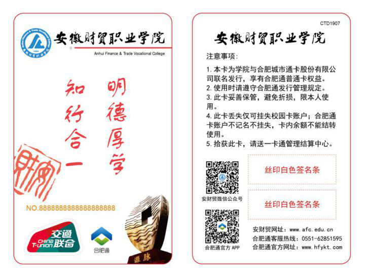 “合肥通”基于多年综合系统建设经验,针对校园、企业等单位用户可以提供一整套“一卡通”功能应用解决方案。单位成员或被授权人员可凭一张卡,在单位范围内进行消费、门禁出入控制、考勤管理、会议签到、车辆出入管理,人员访客出入管理等,并能扩展到企业巡更、电梯控制、医疗、图书借阅等“一卡通”服务等。系统提供企业员工虚拟货币结合,实现电子钱包(现金)支付、联机刷卡支付、刷码支付等功能。