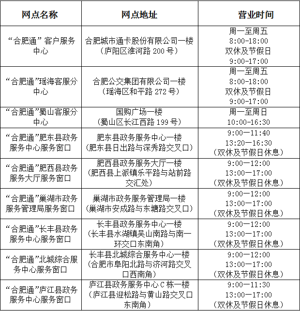 4.合肥城市通卡股份有限公司客服热线:0551--62851595(8:00-17:30)。